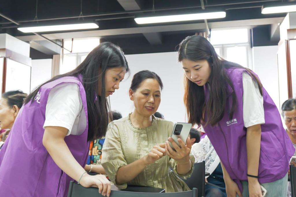 活动聚焦老年人“不会用、不敢用、不想用”智能设备的现实困境,紧扣社区老年群体实际需求,精心设计了阶梯式课程体系,系统讲授了智能设备安装、语音交互技巧、诈骗场景识别及生活场景应用等内容,配套研发的“手绘版操作指南”以图文对照形式实现可视化教学。现场互动环节,老年学员们认真学习操作步骤,师生团队通过“手把手教学+情景化演练”进行精准辅导。参与活动的张阿姨对此次活动给予高度评价:“这次培训特别实用,不仅让我们学会了用智能软件,更通过模拟诈骗电话、AI换脸视频这些真实电信诈骗案例,帮我们筑牢了数字安全防线,这样的活动应该多办!”